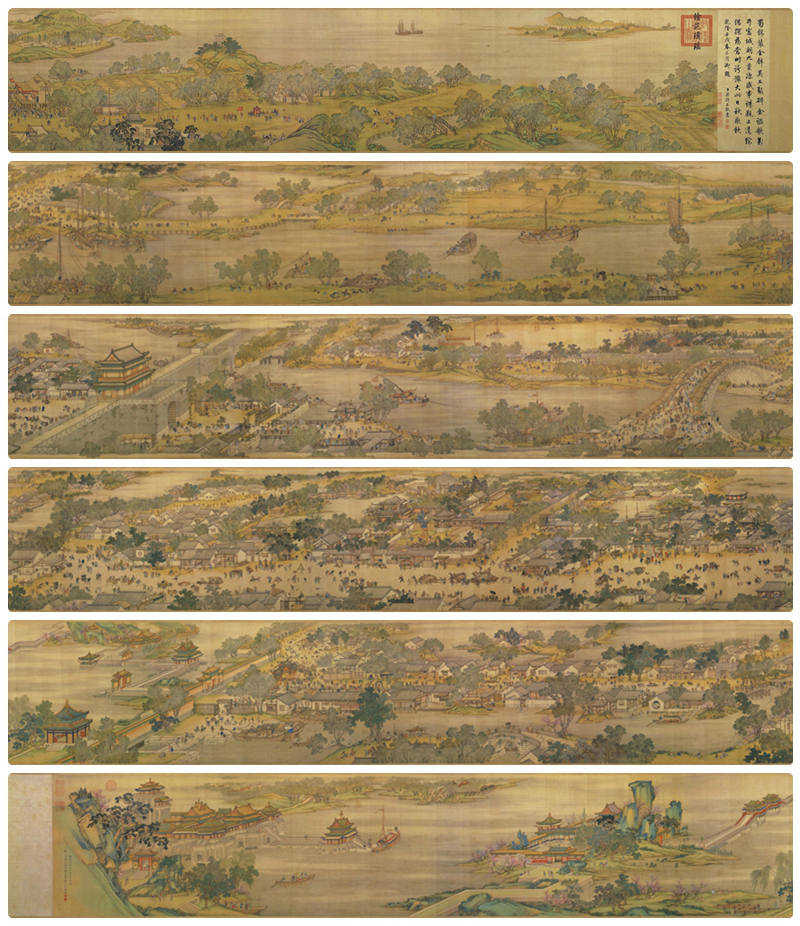제목인 “청명상하(清明上河)”는 ‘청명절(清明節)’ 무렵의 강과 도시 풍경을 의미합니다. 이 시기에는 날씨가 따뜻해지고 사람들이 대거 외출하여 성 밖과 강 주변이 북적이는 모습을 감상할 수 있습니다.