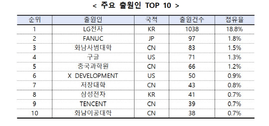 • LG전자: 1,038건 (18.8%, 글로벌 1위)